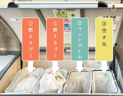 このページを見ている小塚ハイツご入居のかたは、こちらのラベルのあるゴミストッカーにゴミを投入ください